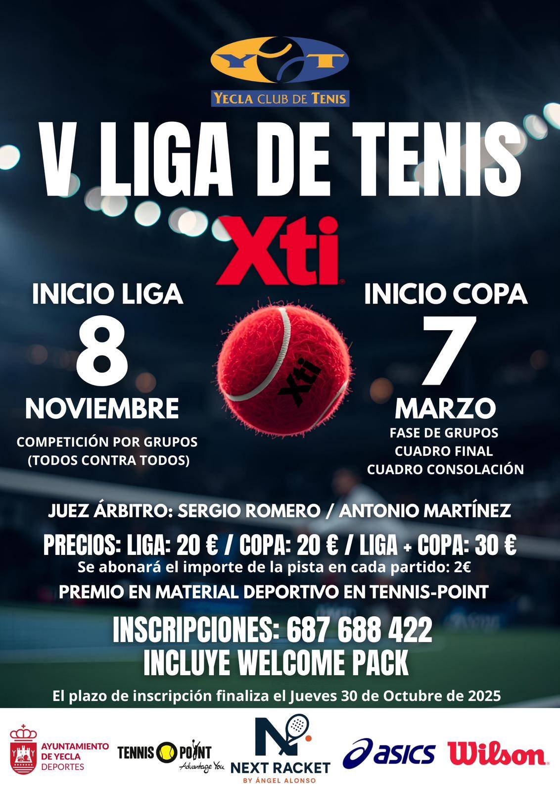 Nos complace anunciar la apertura de inscripciones para la V Liga de Tenis Xti del Yecla Club de Tenis, una competición pensada para disfrutar, competir y seguir mejorando en un gran ambiente deportivo.