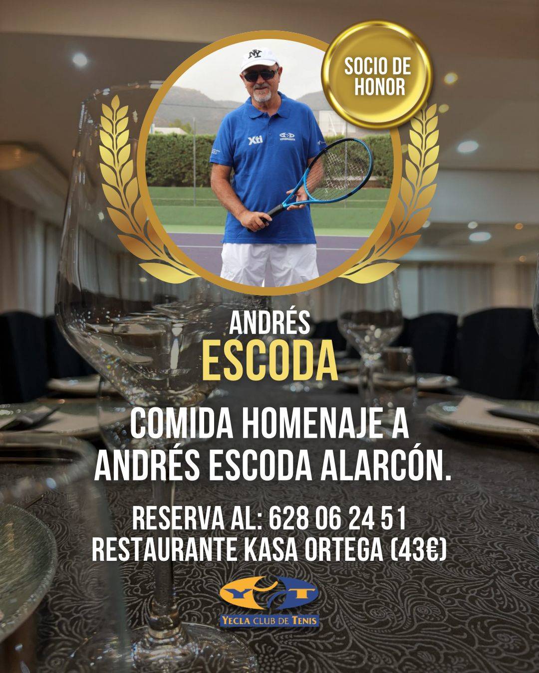 Desde el Yecla Club de Tenis queremos rendir homenaje a Andrés Escoda Alarcón, nombrado socio de honor, por su enorme dedicación y compromiso con nuestro club.