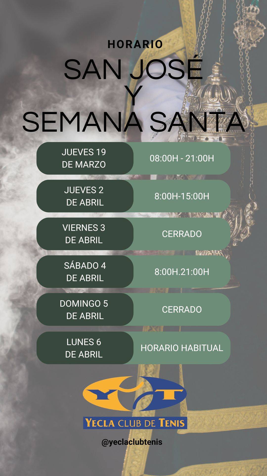 HORARIOS SAN JOSE Y SEMANA SANTA Directiva 16/03/2026 Adjuntamos imagen informativa con los horarios del día del padre y Semana Santa