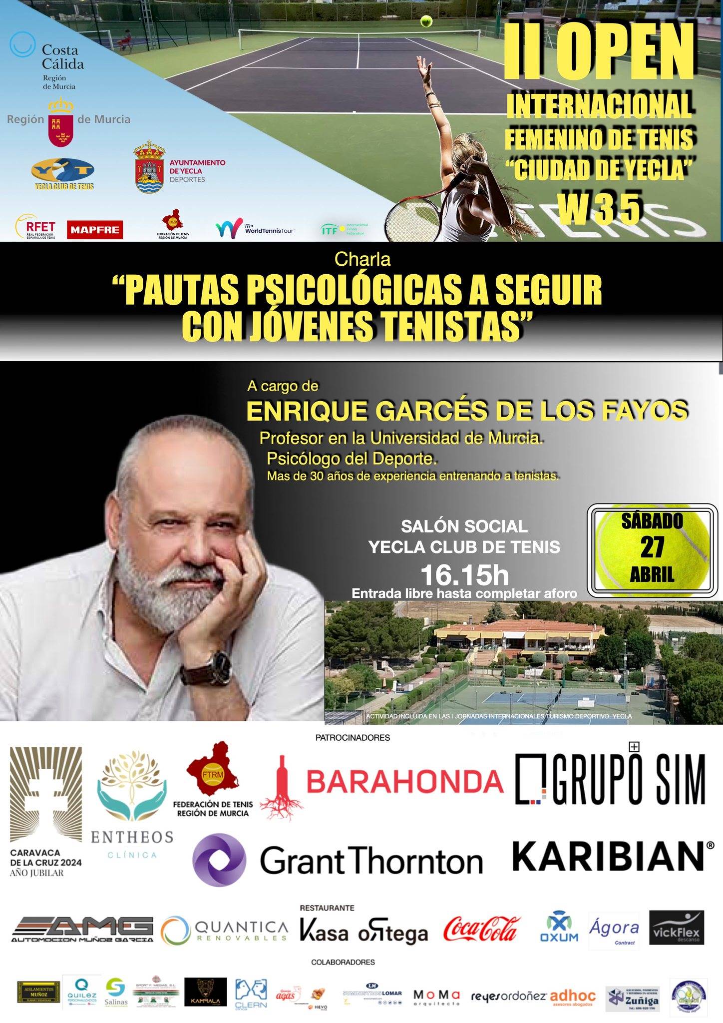 Organiza: Yecla Club de Tenis y Excmo. Ayuntamiento de Yecla.